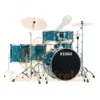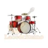 A set of drums typically includes bass drum, snare, toms, and cymbals, providing a powerful rhythmic foundation for various music genres.